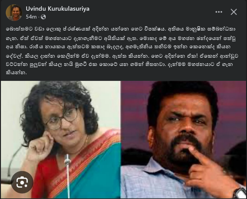 මෑත දිනවල, ජනාධිපති අනුර දිසානායකගේ විවාහය සම්බන්ධයෙන් සමාජ ජාලවල සංවාදයක් ඇති වූ අතර, එයට හේතුව වූයේ විපක්ෂ පාර්ලිමේන්තු මන්ත්රී රෝහණ බණ්ඩාර මහතා විසින් මතු කරන ලද කරුණු කිහිපයකි.